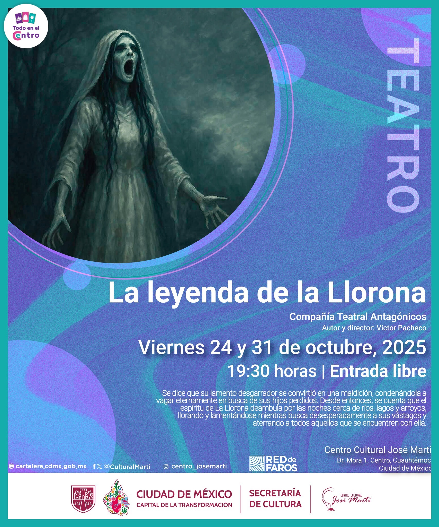 Se dice que su lamento desgarrador 😢 se convirtió en una maldición, condenándola a vagar eternamente en busca de sus hijos perdidos. Desde entonces, se cuenta que el espíritu de La Llorona deambula por las noches 🌙 cerca de ríos, lagos y arroyos 🌊, desesperadamente buscando a sus hijos y espantando a quien se encuentra con ella